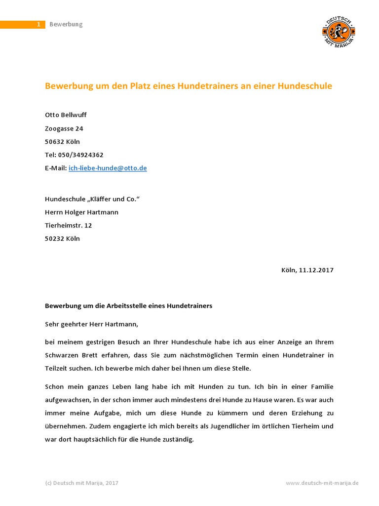 Bewerbung Um Den Platz Eines Hundetrainers An Einer Hundeschule