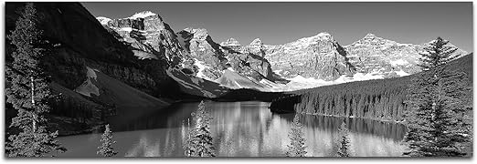 Paul Sinus Art Leinwandfoto Als Panorama Schwarz Weiss 120x40cm Nationalpark Berge Waldsee Baume Schnee Amazon De Kuche Haushalt