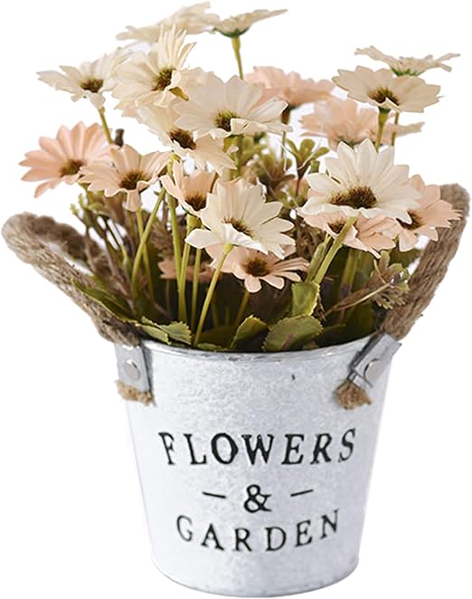 Flikool Kunstliche Pflanzen Im Topf Gefalschte Daisy Mit Eisen Eimer Pot Kunstliche Blumen Gerbera Topfpflanzen Bonsai Margerite Kunstblumen Kunstpflanzen Gelb Amazon De Kuche Haushalt