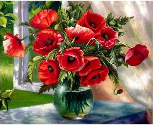 Diy Hand Gemalt Von Nummern Kits Rote Blumen Diy Malen Nach Zahlen Handgemalte Olgemalde Acryl Auf Leinwand Fur Wohnkultur Kein Rahmen Amazon De Kuche Haushalt