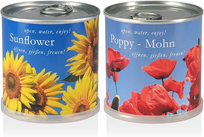Blumen In Der Dose Geschenk Set Sonnenblume Mohn Amazon De Garten