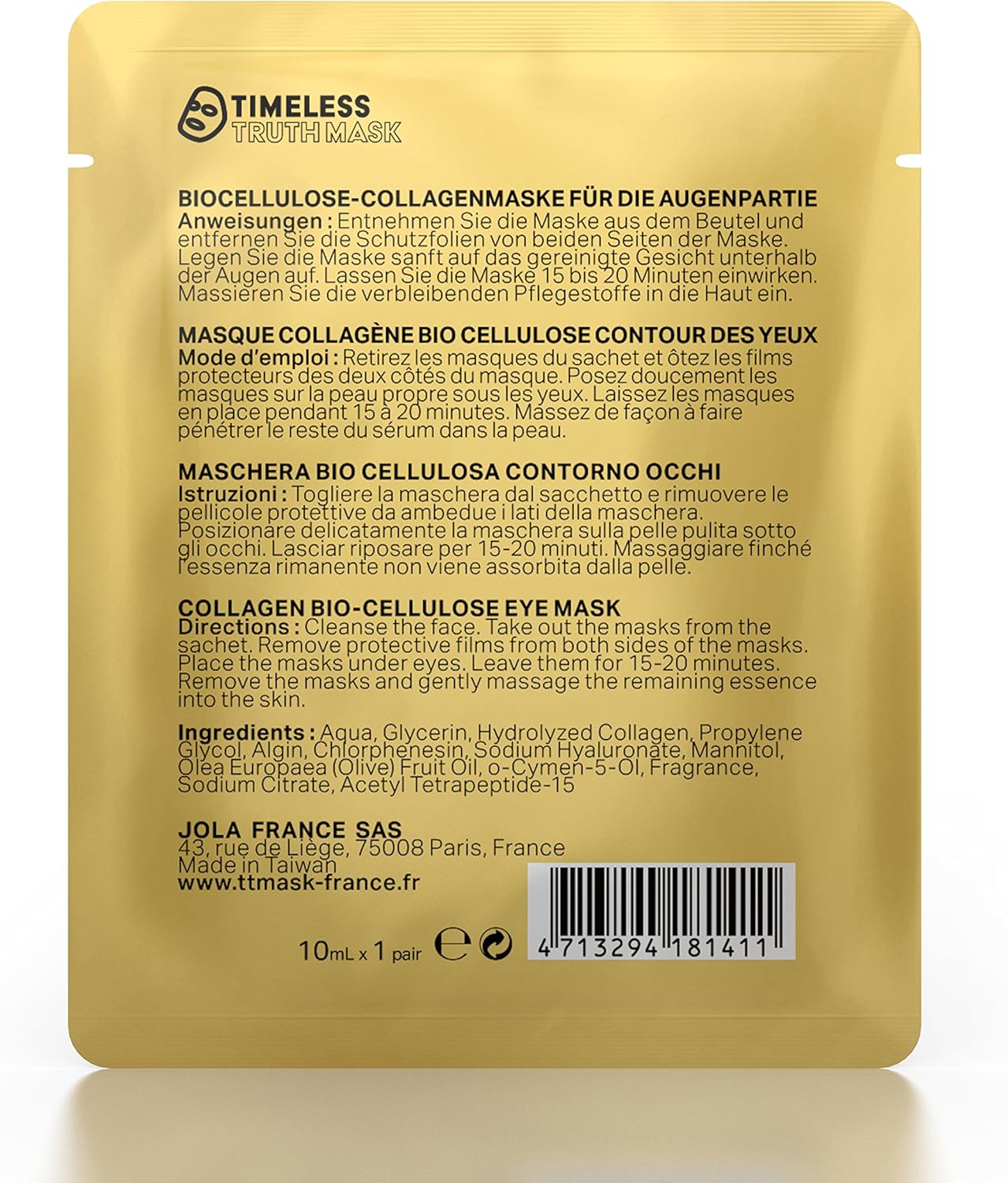 Timeless Truth Anti Ageing Collagen Bio Cellulose Eye Mask Travel Size 10 Pack Amazon Co Uk Beauty