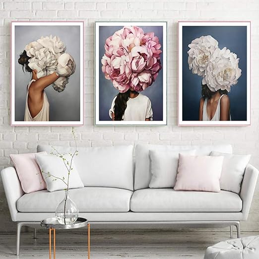 Znley O Leinwand Wandbilder Feder Blumen Frauen Kopf Plakat Nordic Abstrakt Kunstdruck Malerei Modernes Dekoratives Bild Wohnzimmer Dekoration Color Picture 4 Size Inch 30x40cm Unframed Amazon De Kuche Haushalt