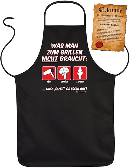 Grill Schurze Was Man Zum Grillen Nicht Braucht Bbq Fun Koch Schurze Geil Bedruckt Geschenk Set Mit Grillmeister Urkunde Amazon De Garten