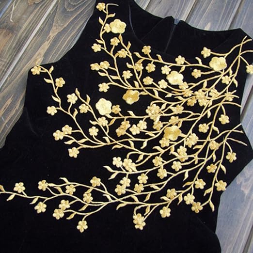 Gestickte Blumen Von Pflaumen Gold Applikation Stickerei Ecussons Zum Aufbugeln Grosse Calycanthe 34 Cm Hand Arbeit Auch Zum Aufnahen Amazon De Kuche Haushalt
