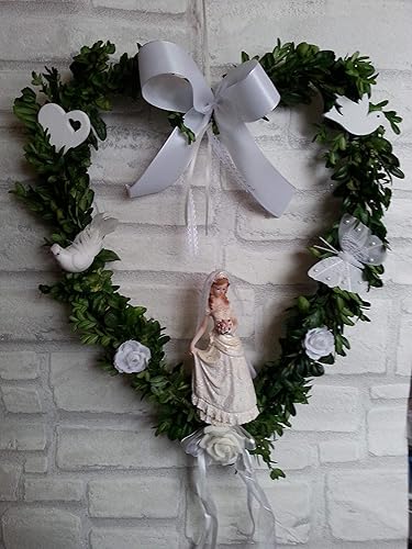 Buchsbaum Herz Mit Braut Hochzeit Ca 40cm Frisches Grun Handgebunden Amazon De Handmade