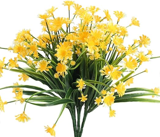 Nahuaa 4 Stuck Kunstliche Blumen Balkon Kunstpflanzen Draussen Plastik Pflanze Blumen Deko Kunstblumen Kunstoff Straucher Grunpflanzen Fur Garten Topf Winter Fensterbank Fruhling Deko Gelb Amazon De Kuche Haushalt