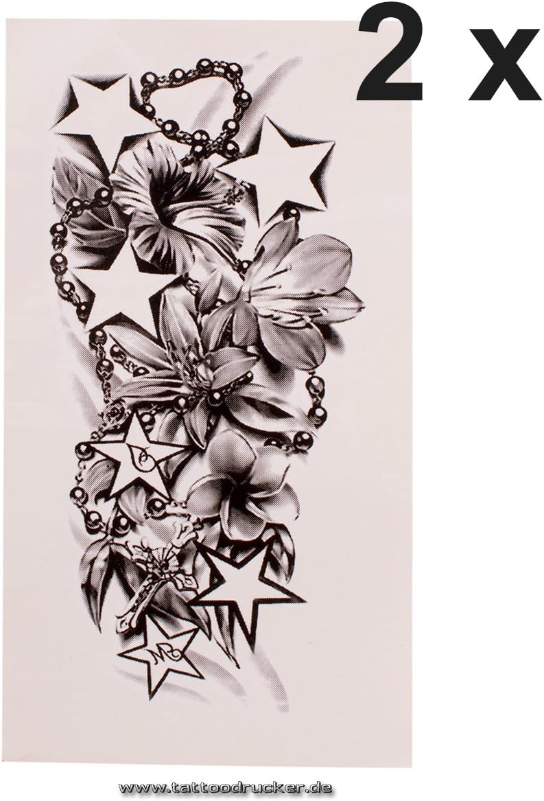 2 X Lotus Blumen Kette Kreuz Sterne Tattoo In Schwarz Einmal Korpertattoo Tattoo A1224 2 Amazon De Kuche Haushalt
