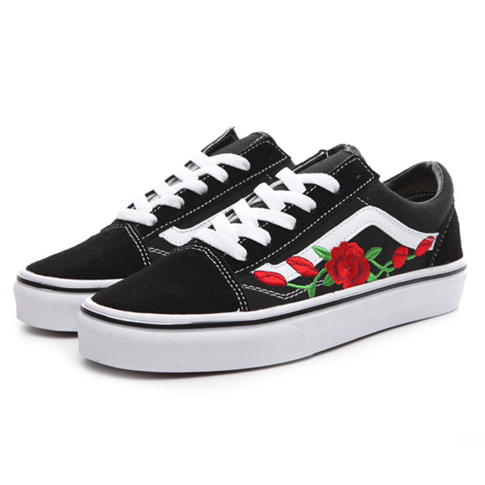 Vans Old Skool Custom Rosa Rose Patch Unisex Alle Grossen Sneaker Schuhe Stickerei Sk8 Hi Nike Air Force Lv Rosen Blumen Vans Old Skool Vans Old Skool Custom Vans Shoes Fashion
